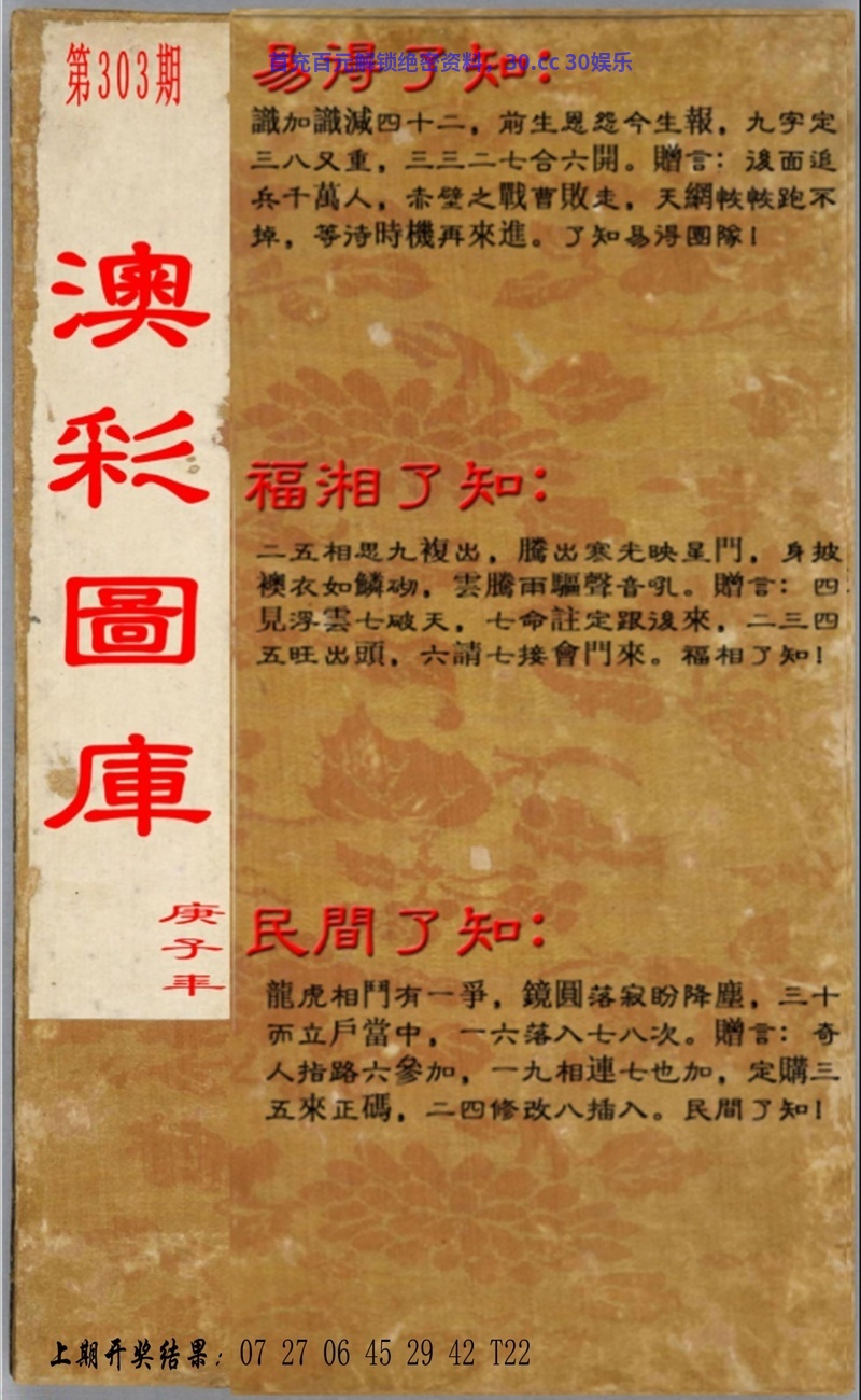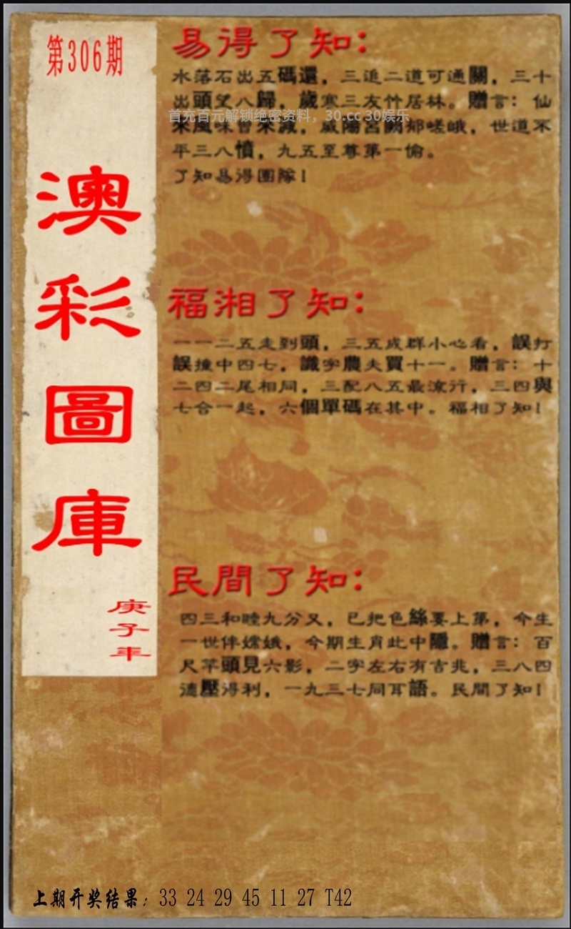 305期:🀄平特一尾🀄3333🀄开:鸡33中